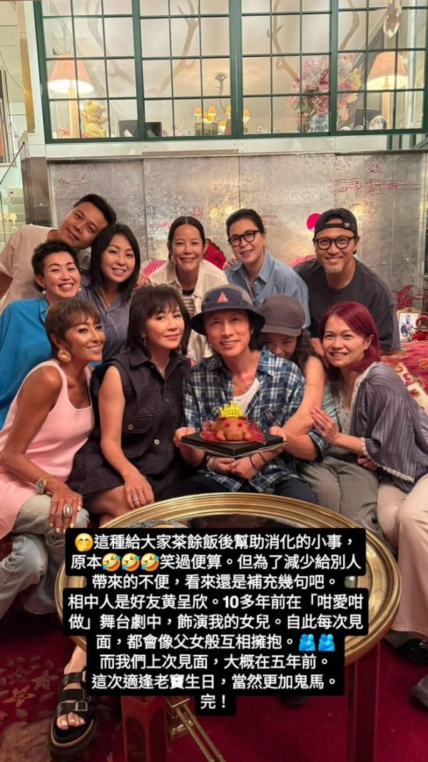 面对恋情传闻在网上发酵,一向对私生活低调的黄子华,昨晚竟亲自在社交平台发长文澄清,坦言是为了不想为朋友带来不便。他直接了当地解释了两人的关系,并强调拥抱只是一个鬼马的“父女”互动。子华在文中写道:“相中人是好友黄呈欣。10多年前在‘咁爱咁做’舞台剧中,饰演我的女儿。自此每次见面,都会像父女般互相拥抱。而我们上次见面,大概在五年前。这次适逢老窦生日,当然更加鬼马。完!”子华神罕有地为绯闻解画,可见他对这位“女儿”相当保护。