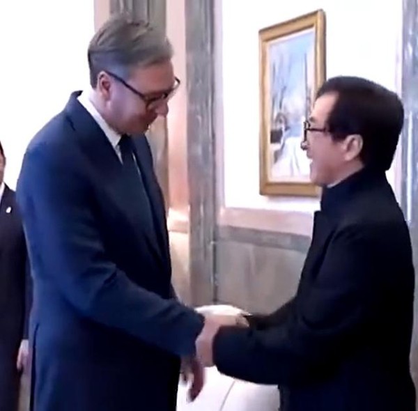 成龙大哥跟塞尔维亚总统武契奇,这俩人一块儿合影了?