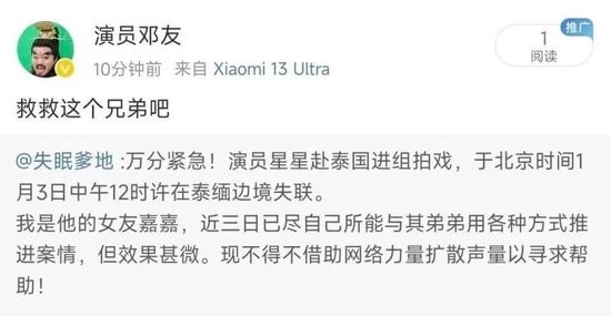 热搜第一!“男演员在泰缅边境失联”,多位演员发声寻人