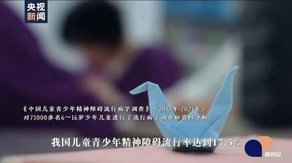 央视频发布了一个和青少年抑郁相关的视频,里面提到了一个数据,我国儿童青少年精神障碍流行病已达到17.5%。