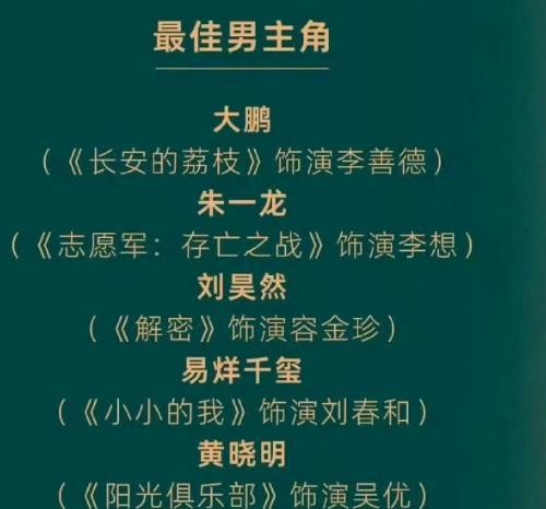 易烊千玺,年度男演员!宋佳、咏梅携手获年度女演员荣誉!