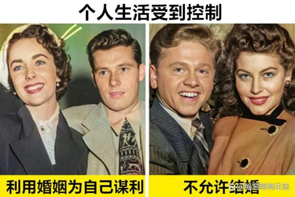 根据一些媒体的报道,曾经的好莱坞演员,个人生活也受到了严格的控制,完全失去了自由,伊丽莎白·泰勒就公开说过,电影制片厂控制了她生活的方方面面,甚至就连约会的对象都会进行安排设计。
