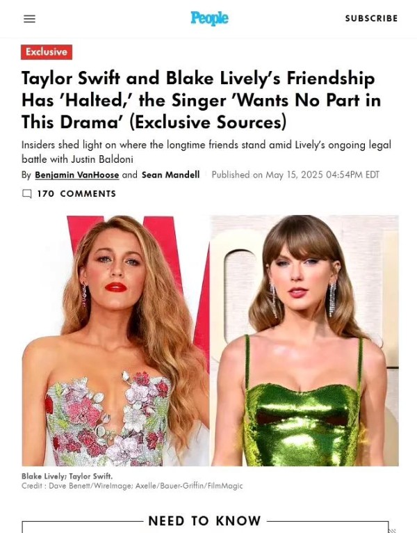 这场友谊破裂的导火索,源于布蕾克与贾斯汀·贝尔杜尼(Justin Baldoni)之间的一场“抓马”官司。布蕾克指控电影《爱情,到此为止》的导演贾斯X存在骚扰行为,并一纸诉状将其告上法庭。而霉霉此前曾授权自己的经典歌曲《My Tears Ricochet》用于该电影原声带,这一授权行为,却意外将她卷入了这场风波。