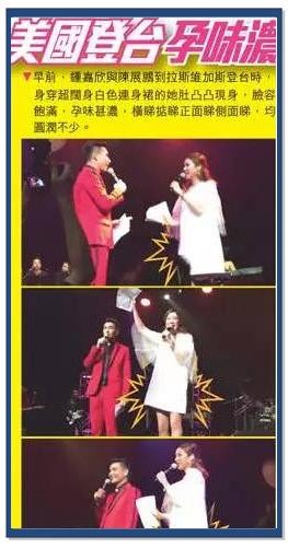 本月14日,钟嘉欣与陈展鹏携手在拉斯维加斯登台献艺。钟嘉欣身着一袭宽松的白色连衣裙,孕相愈发明显。在演唱《祝福你》的过程中,她向观众们送上了真挚的祝福,其中不乏“祝大家年年有余,猴年快生B”的幽默之言。