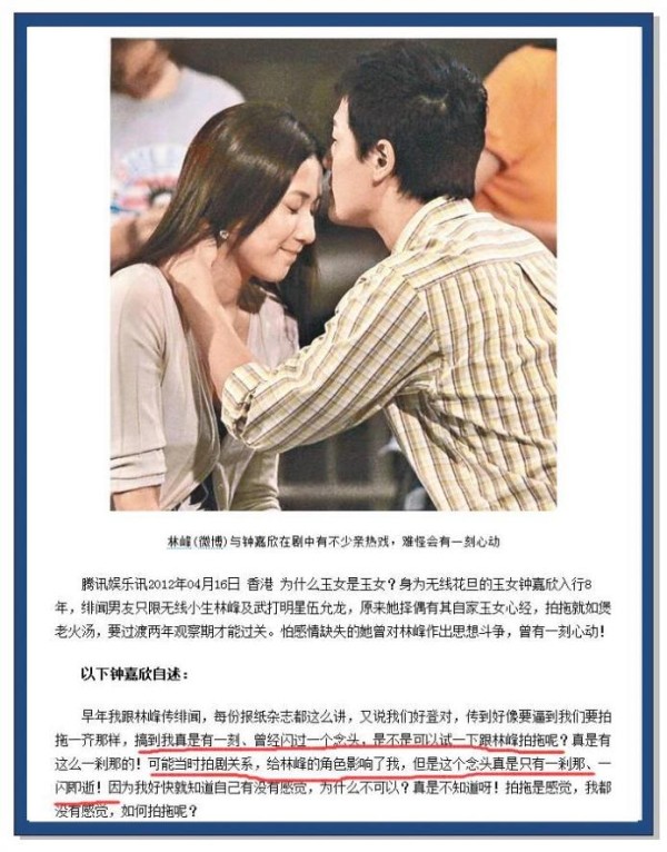 ▲ 林峰和钟嘉欣轶事