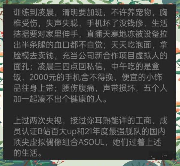 有位盟友的见解颇为独到,他指出,那些为虚拟偶像疯狂的粉丝,不论性别,都陷入了相似的迷思,各自展现出独特的痴迷。虚拟偶像的走红背后是资本运作的结果,以ASOUL为例,口碑的变化反映了粉丝现象与资本操控的关联。然而,在我们对虚拟偶像的狂热粉丝进行嘲笑,对那些虚伪的皮套人进行批判时,我们或许忽视了隐藏在背后的真正推手——资本。最近,一个以男性粉丝为基础的国产虚拟偶像女团ASOUL,其口碑在短时间内急剧下滑,似乎也印证了这一点。