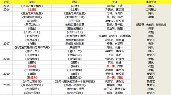 由于疫情原因2020年拍摄行程暂停,耽改剧只播出了三部都没有出圈,而三大视频网站也早已囤积了几部耽改剧正准备在2021年火力全开。