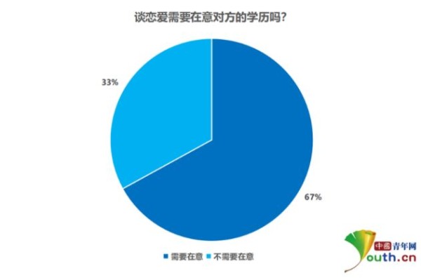 之前,中国青年网曾针对“谈恋爱是否需要在意对方学历”这个话题,展开问卷调查,结果显示67%的人认为需要在意,33%的人并不在意。