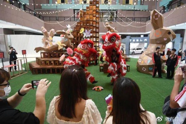 2023年1月30日,新加坡滨海湾一家购物商场举办庆新春舞狮活动。新华社发