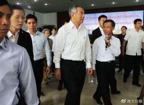 2014年,新加坡总理李显龙参观广州中新知识城。南方日报资料图