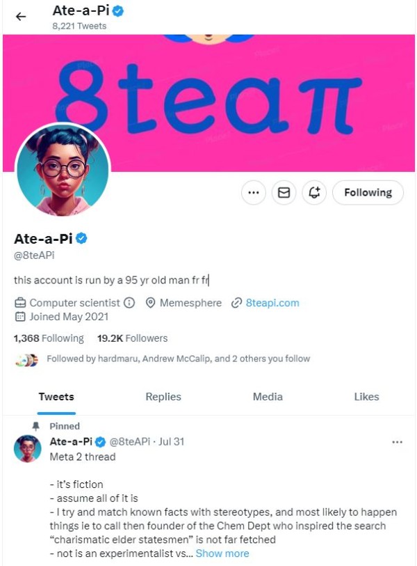 另一个不确定的消息,瓜就太大了,推特上一个名为Ate-a-Pi的账号,自称是计算机科学家,近期一直在发布这项研究及LK-99相关的帖子,显而易见对此非常了解,而且对几个主要人物,包括李石培、崔智勋、权英完、金炫卓,也都有很多猛料,可以说完全就是这个事件很多“第一人称视角”消息的主要源头。