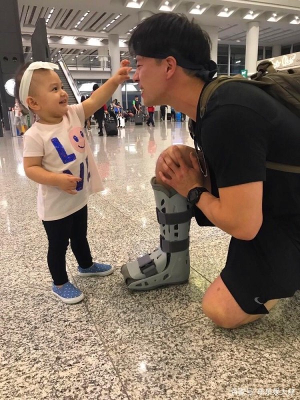 最让我有感触的还是下面这张照片,照片中安志杰身处在机场,他的右脚受伤了,半跪在地上,他的女儿抬起了左手想要触碰安志杰的鼻子,右手捏着兰花指,很可爱的样子,安志杰很自然的就把鼻子抬起来,好让自己的女儿能搞够触摸, 真是位好爸爸啊!