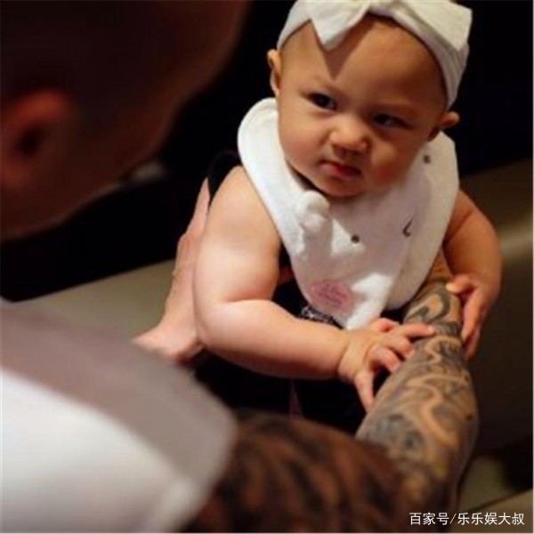 而下面这张照片,小宝宝的表情真是太好玩了。她抱着安志杰充满纹身的胳膊,一脸凝重,仿佛在说“谁让你纹身的,擦掉它”,哈哈,太搞笑了。