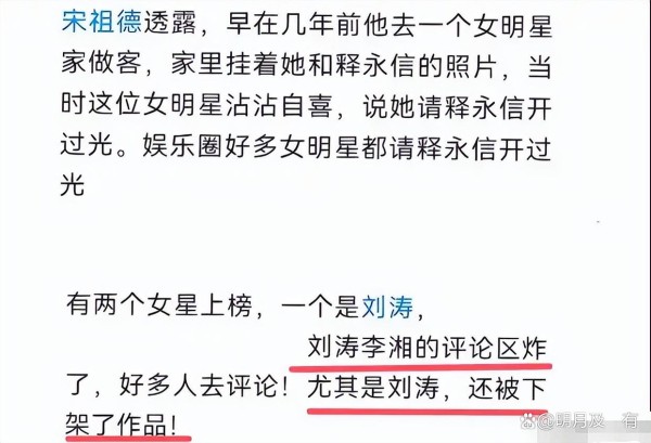 李湘被释永信风波牵连,宋祖德曝女星的 “开光” 秘辛引热议