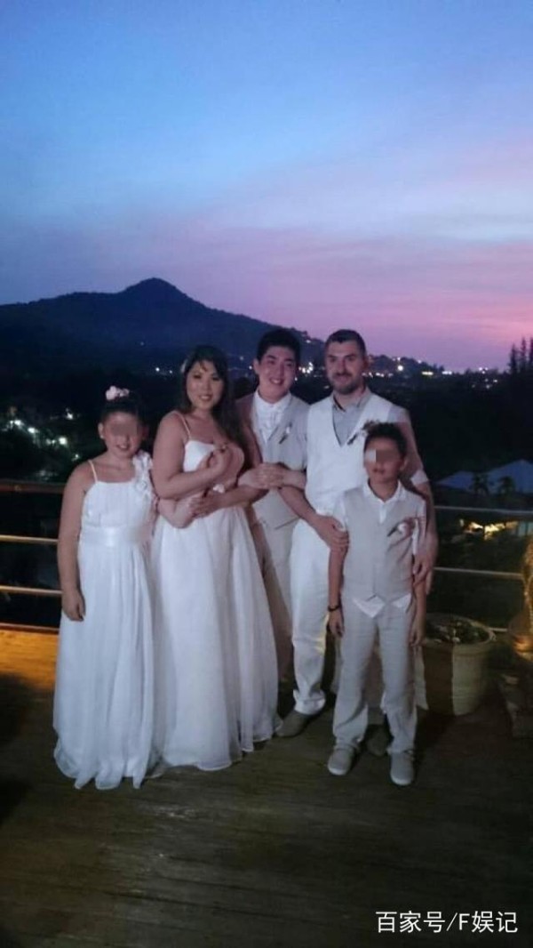 这张是Joyce以前一家人的合照,一家五口都穿着白色礼服,看起来很温馨。