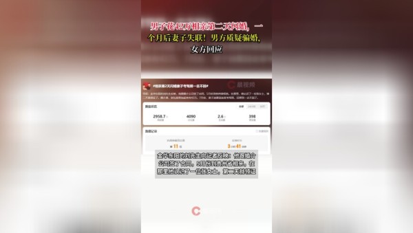 男子花42万相亲第二天闪婚,一个月后妻子失联!男方质疑骗婚,女方回应
