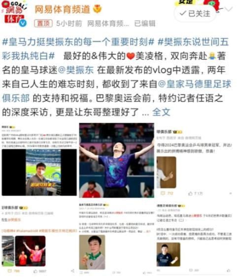 说到樊振东的国际影响力,那可不是盖的。有皇马这样的世界体坛影响力天花板级别的球队支持,他的国际地位直线飙升。