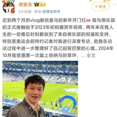 皇马关注了樊振东,还公开发文力挺,祝他2025年在不同的赛场上都能收获更多的胜利。