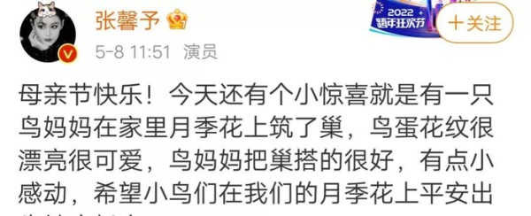 除了晒出自己妈妈的美照,还把鸟妈妈搭的巢也晒出来了。