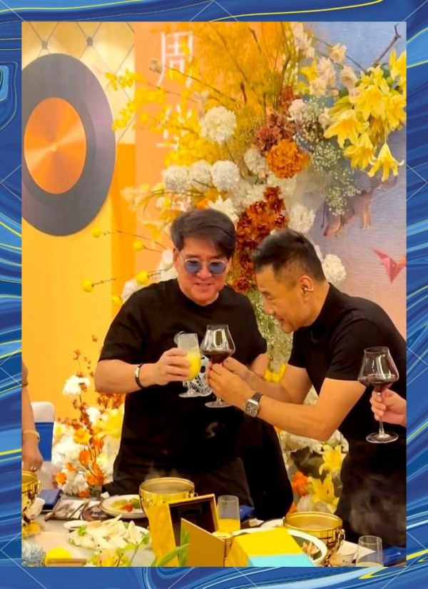 于荣光请周华健吃饭,场面太有排面!餐具竟是“汉青国瓷”,酒店档次被他拉满