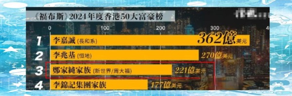 郑裕彤虽不及李嘉诚、李兆基等香港巨富之名气,但他在香港富豪界的地位同样举足轻重。郑裕彤与李嘉诚、李兆基、郭得胜齐名,被尊为“香港四大家族”之一。郑裕彤家族在香港50大富豪中的排名同样不容小觑,紧随李嘉诚和李兆基之后,稳居第三位。其家族资产之雄厚,高达1000多亿元,彰显了郑裕彤在商界的非凡成就与地位。