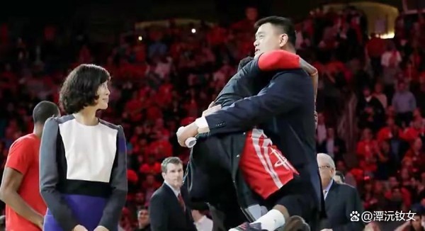哈登与姚明情谊永存,当年姚明退役球衣,哈登直接上去“熊抱”!