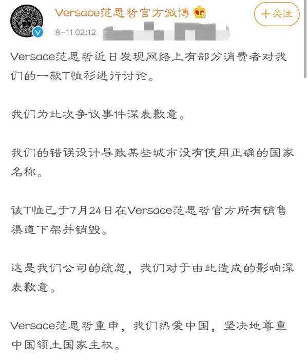 文中,范思哲表示对于近期的一个失误而感到抱歉,并声称他们一直尊重中国国家主权,而对于这一次错误所造成的不良影响深感抱歉。
