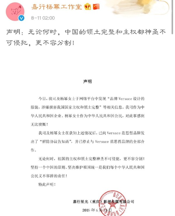 范思哲辱华事件始末 范思哲辱华道歉说了什么?范思哲杨幂什么关系范思哲把香港澳门列为国家,代言人杨幂凌晨两点宣布和范思哲解约