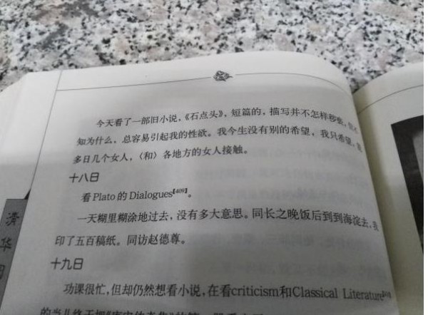 不过日记中都是他吐槽自己生活的片段,特别是关于异性这一一点,比如男生都爱看女生打球,不过那是去看打球嘛,那是看大腿,但是清华篮球队女生的大腿都太黑,没看完走了。