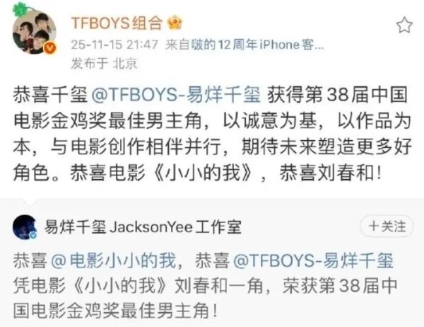 华表奖:易烊千玺人缘好,女演员差距彻底拉开