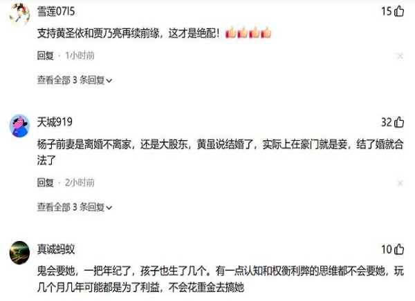 网友对黄圣依和贾乃亮复合的看法褒贬不一,涉及职业(直播带货)等因素。