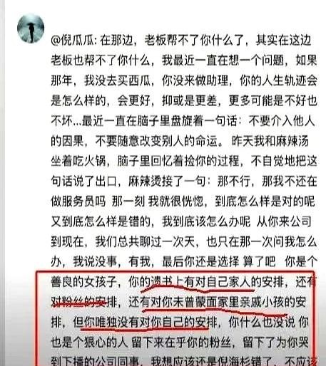 最让人心疼的是她留下的遗书,把家里人的后事安排得明明白白,连远房亲戚家孩子的学费都考虑到了,却一个字都没提把她带进这个行业的倪海杉。倪海杉后来在微博上发了一段话,字里行间全是自责:"如果那年没去买西瓜..."这话说得,让人鼻子直发酸。