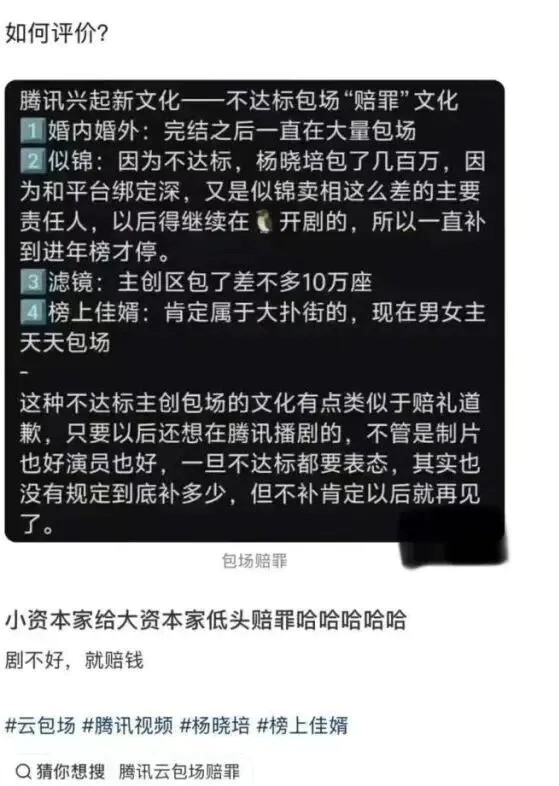 《似锦》《榜上佳婿》《长安的荔枝》等剧就曾深陷相关质疑,外界普遍传言它们因播出数据未达平台预期,剧方和主创通过持续追加云包场“填坑”。狐厂娱乐观察也曾发文揭秘,所谓“包场赔罪”本质是“宣发保底”的变种,指播出成绩不佳的项目,制作方或主演需自掏腰包购买平台会员用于云包场,以此维护与平台的合作关系、弥补拉新不足的损失,而平台有时还会为艺人包场提供补贴,部分费用也能以宣发名义覆盖。