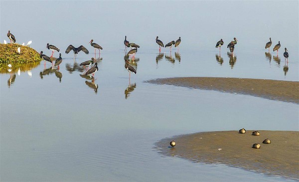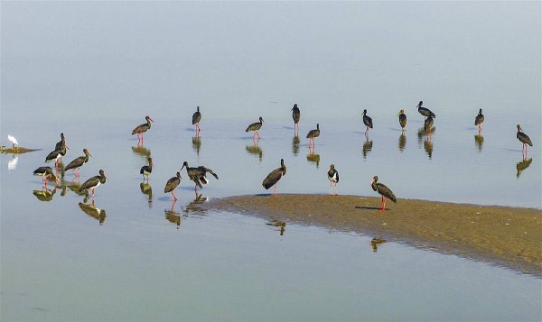 武汉人的老朋友,黑鹳如期抵达天兴洲越冬