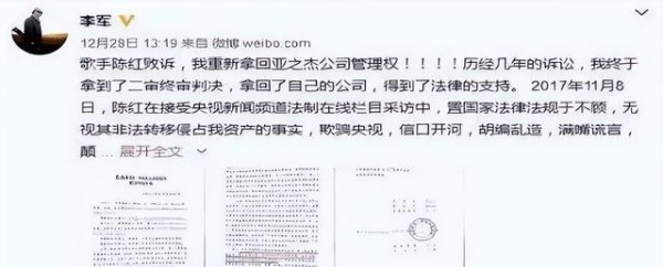 前夫李军一口气甩出几条猛料:陈红涉嫌伪造文件、非法更改公司登记,还有掏空亚之杰集团几十亿资产。