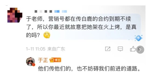 于正回应白鹿合约到期传闻:不会影响我们的发展方向