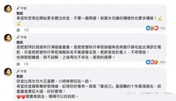 其实,这已经不是甄妮第一次为郑欣宜发声了。之前她就曾在微博上公开为郑欣宜庆祝生日,并呼吁大家多关注和支持这个可爱的女孩。这次,她再次站出来为郑欣宜说话,可见她对这个外甥女的疼爱之情。