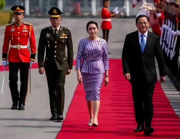 宋赛访问泰国的这场外交活动,无论是从形式还是内容上看,都可以说是“教科书级别”的。佩通坦穿了一身紫色套装,泰国还安排了红毯和仪仗队,宋赛的笑容也是一大亮点,每个细节都经过精心策划,传递出了明确的政治信号。