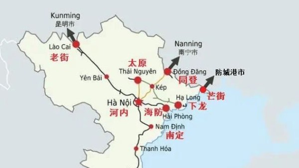 其中涉及三条铁路,一条是越南的老街到首都河内,再到海防的铁路,这条铁路采用1435毫米标准轨,将直接对接我国云南昆明。第二条是从越南芒街沿海岸线抵达下龙市,再到海防,对接的是我国广西的防城港。第三条则是从越南边境重镇谅山到首都河内,对接我国广西南宁。