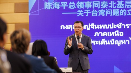 2025年7月31日,驻清迈总领馆举办泰国北部基层公务员见面会。驻清迈总领事陈海平就台湾问题开展专题宣介,同到场的清迈、清莱府商务、文旅、农业等部门及移民、旅游警察等共40名公务员交流。