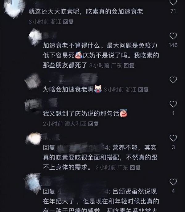没想到吕颂贤的这番分享引起了不少网友的热烈讨论,大家都在猜他的身体状况跟他多年来坚持吃素有关,觉得营养摄入不均衡,导致免疫力变差。