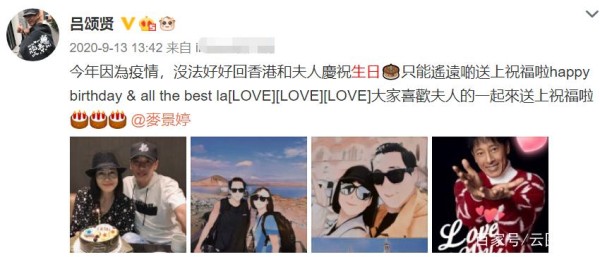 不过,前段时间,店里的生意实在太忙了,加上受不可抗力影响,吕颂贤没办法回港为妻子庆祝生日。他只能在个人社交账号上发文,隔空为妻子送上祝福。