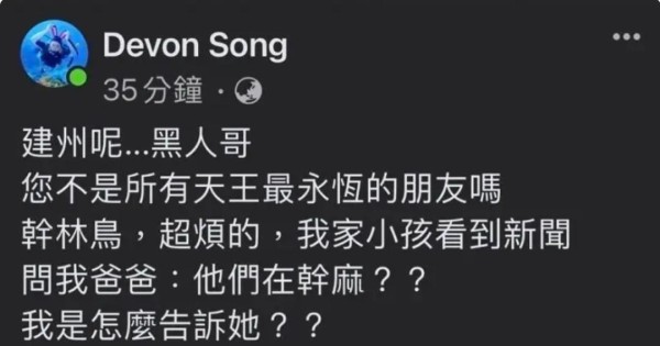 “建州呢…黑人哥,您不是所有天王最永恒的朋友吗?”他在个人Facebook账号讽刺道。