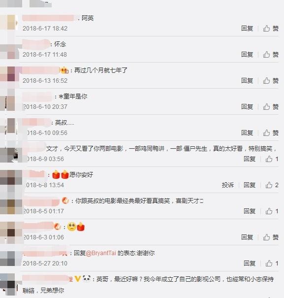 有网友感叹道:我是小时候就在看你们的电影,转眼之间我长大了,而你却不在了。也有网友说到,2019年了,你却离开我八年了。第一条微博,却也是最后一条。