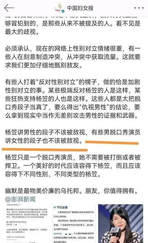 杨笠被举报,姚晨罗永浩发文力挺,池子:脱口秀不应该是这样的