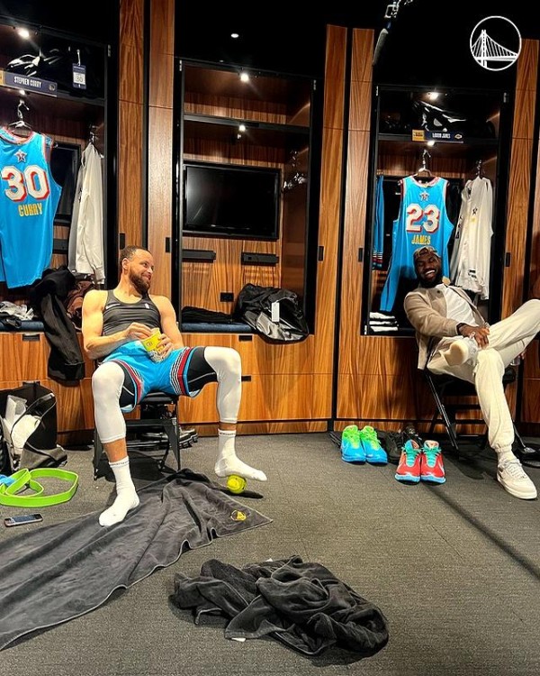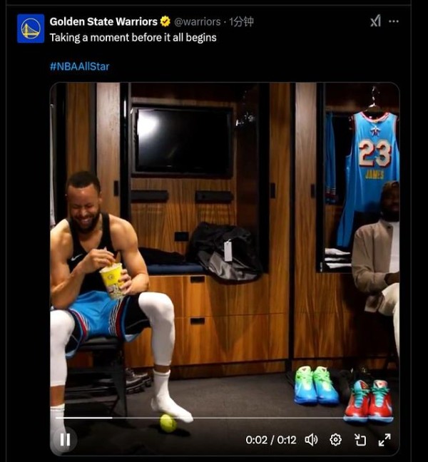 携手再战全明星!库里与詹姆斯在更衣室聊嗨了