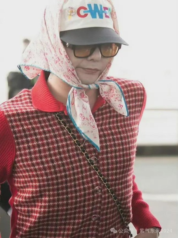 “容嬷嬷”李明启穿羽绒服裹红头巾很保暖 获范冰冰保镖全程护送
