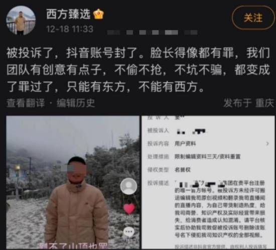 唯独高仿账号西方臻选刚走上蹭热度之路,却在直播后的第二天被封号了。