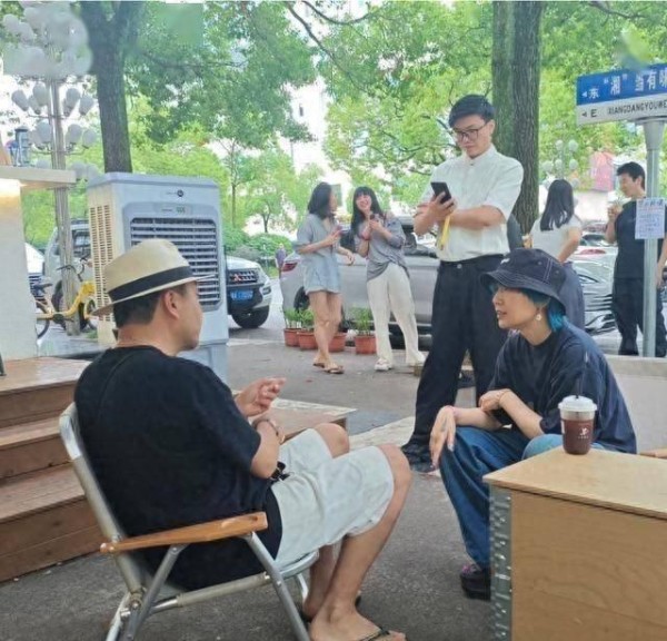 说实话,那个探店的场景特别暖心。周笔畅啊,戴着顶黑色渔夫帽,帽檐压得低低的,乍一看谁也没认出来。她跟着汪涵哥后面点咖啡,刚开始被镜头对着还害羞呢,手捧着咖啡不敢抬头。后来呢?嘿,完全放开了!俩人干脆就坐在店门口的小桌旁,天南地北地聊开了。你看周笔畅那打扮,街头感十足,蓝T恤、牛仔裤,晃着大耳坠,露出的那一抹蓝短发,活脱脱像个个性十足的少年郎,眼神亮亮的,还穿着年轻人爱的洞洞鞋。再看咱们涵哥,穿着太接地气了:黑T恤配白短裤,脚下蹬着双人字拖,坐在靠背小椅子上。镜头一拉远,好家伙,胡子头发都白了不少,沧桑感扑面而来。明明只差12岁,坐一起聊天,倒像是对年纪差了一辈的兄妹,甚至像父女!一点明星架子都没有,就是一对老友重逢,平淡又温馨,让人看了就舒服。汪涵摸着店里的狗子,周笔畅在旁边笑着看,这画面跟一个小区里的老邻居有啥区别?