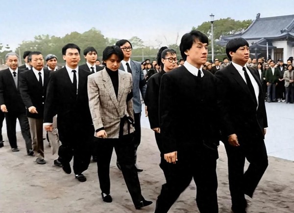 1988年,蒋经国葬礼仪式,成龙洪金宝前来悼念,现场珍贵合影